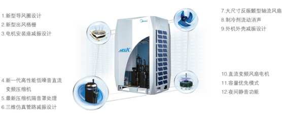 利用CFD、FEM等先進(jìn)技術(shù)對空調(diào)系統(tǒng)的元器件振動源進(jìn)行優(yōu)化,實(shí)現(xiàn)靜音運(yùn)轉(zhuǎn),夜間運(yùn)行模式把噪音降低到最低。